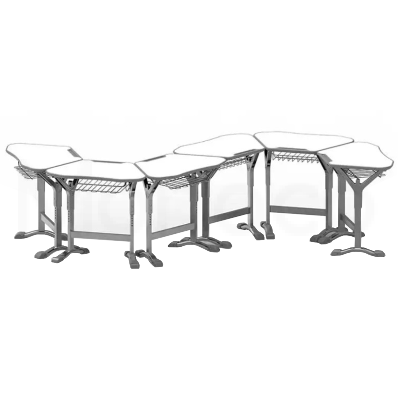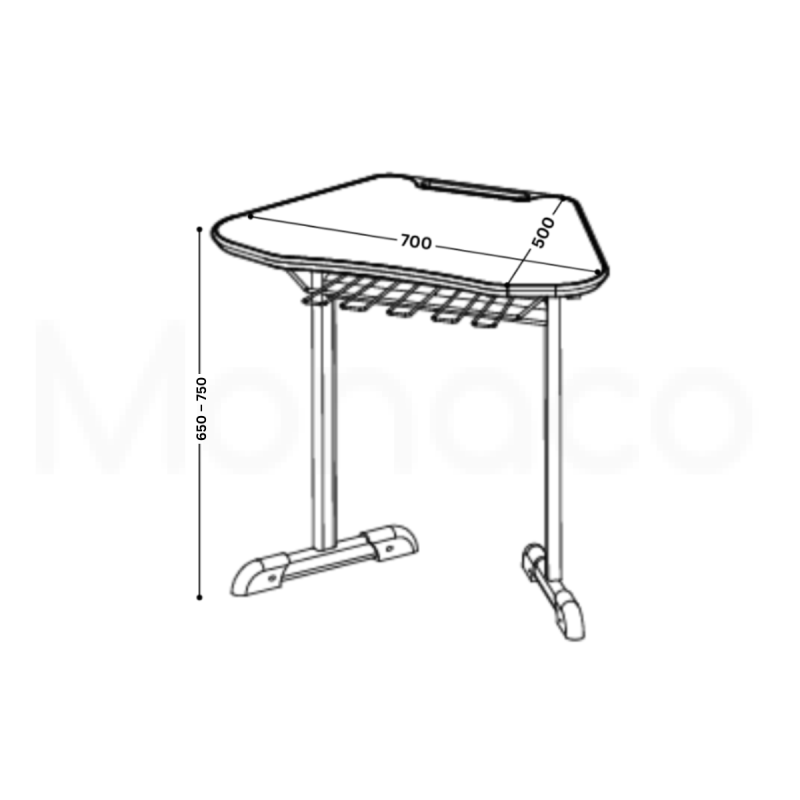- Ученическа маса: метална основа, регулируема на височина 650 – 750 mm.
