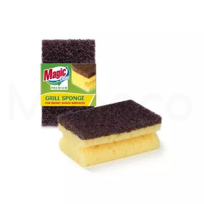Домакинска гъба произведена от порест материал за максимално разпенване на препарата и здрава абразивна повърхност. Подходящ за почистване на скари и грил. Каналът на гъбата служи за предпазване на пръстите от контакт със замърсените повърхности
