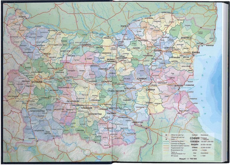 • Корица с топъл печат сребро, лице с мека вложка, цветна карта на Европа и България