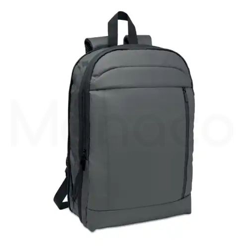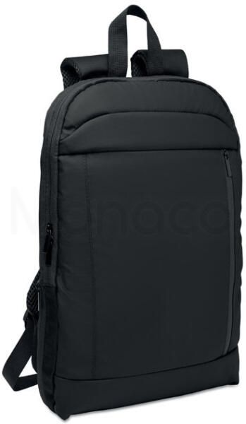 - Разширяема 600D RPET полиестерна раница за лаптоп 16” с PU покритие отпред и RPET полиестерна подплата