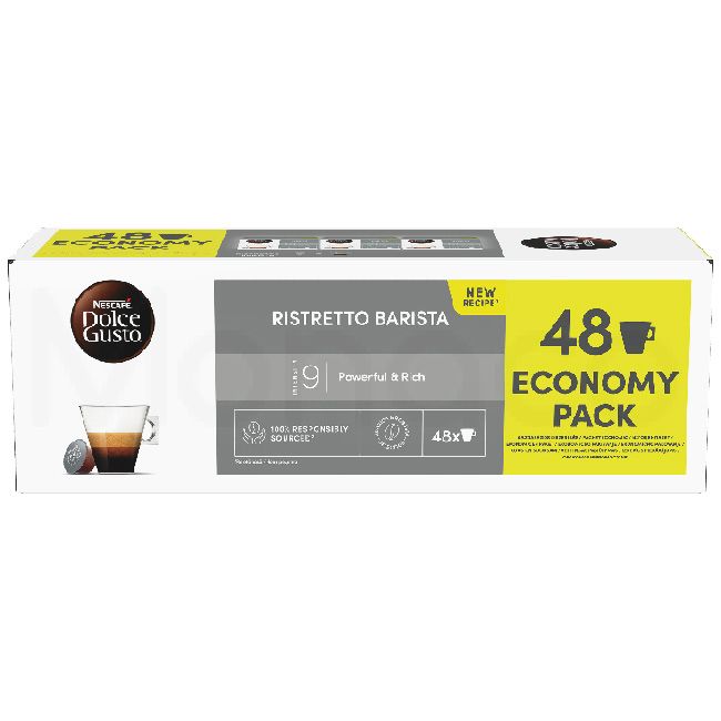 - Открий NESCAFE DOLCE GUSTO Ristretto Barista Икономичен пакет с 48 капсули - късо кафе, ристрето (35 ml), с плътно тяло, гъст каймак и долавящи се нотки на какао, амарето, щипка черен касис и боровинка. Интензитет 9. Печено мляно кафе Арабика и Робуста с произход от Етиопия, Виетнам и Бразилия.